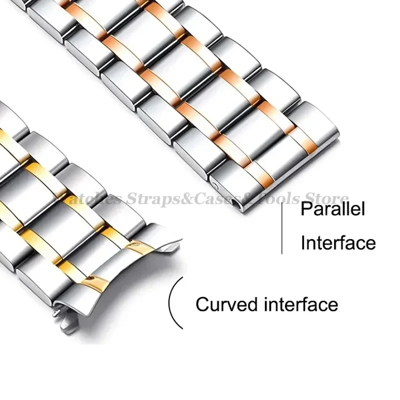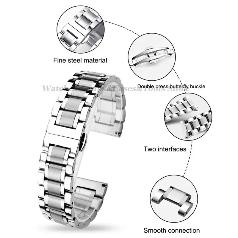 Curved End Solid Stainless Steel Universal Strap 12/13/14/15/16/17/18/19/20/21/22/23/24mm Watch Bands for Tissot Butterfly Clasp