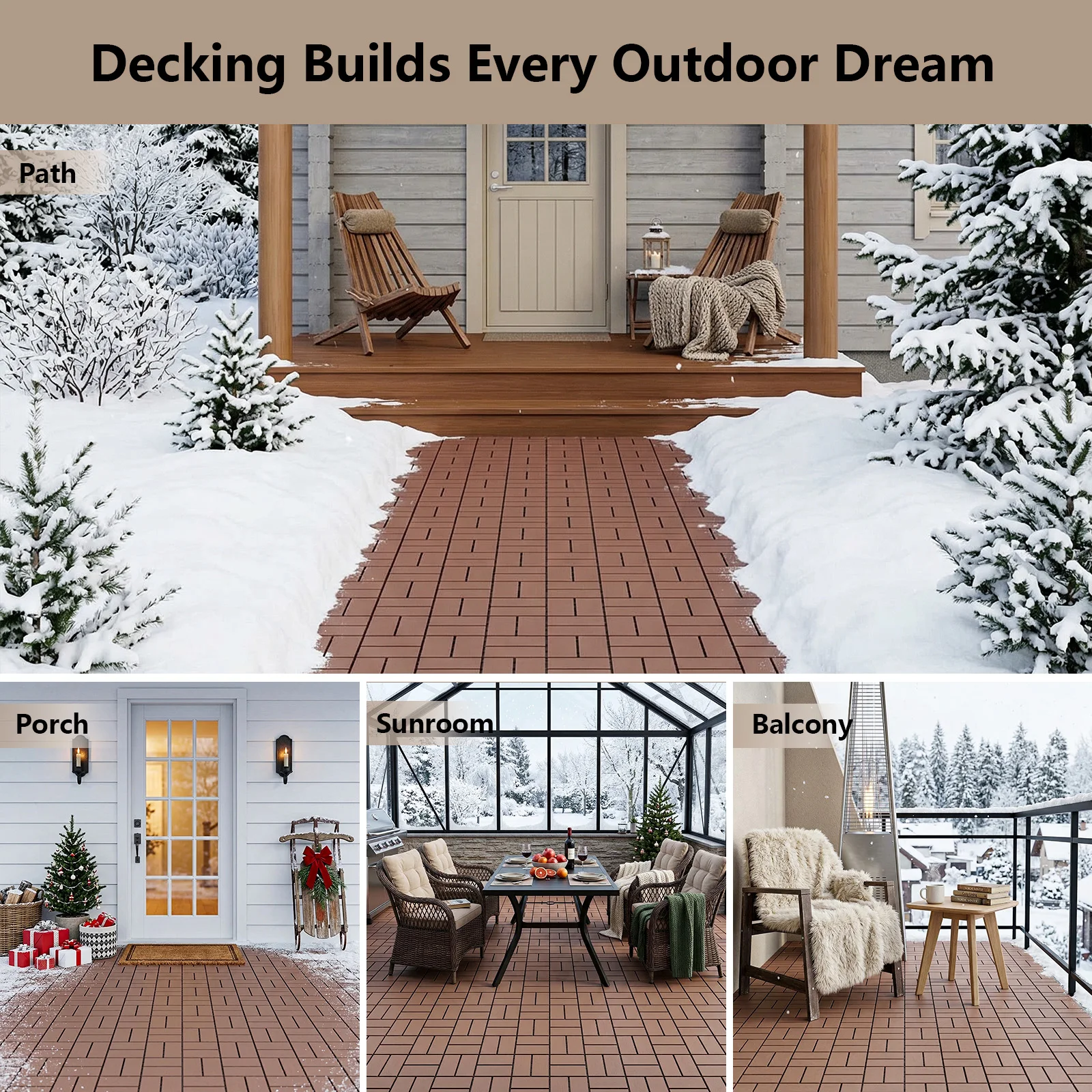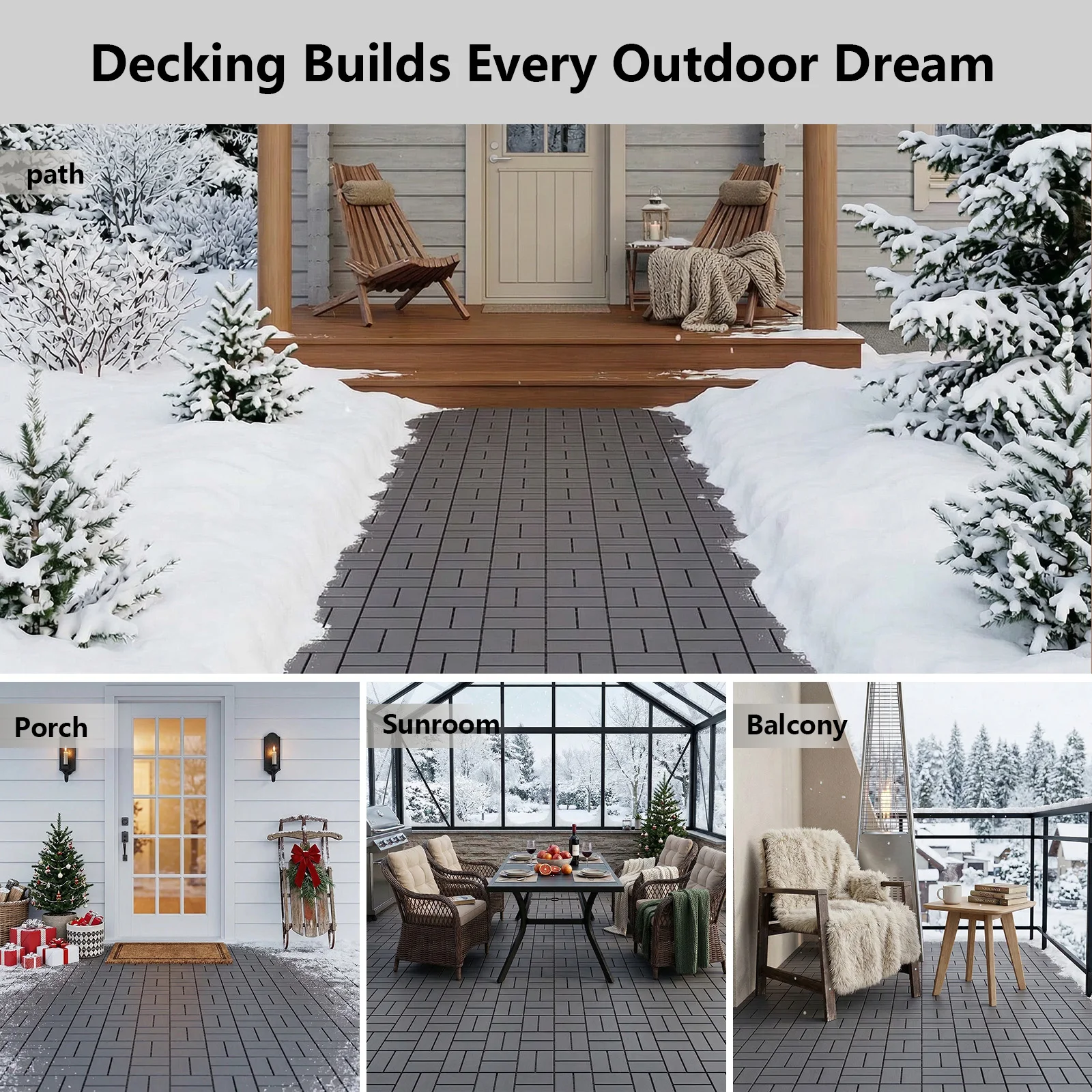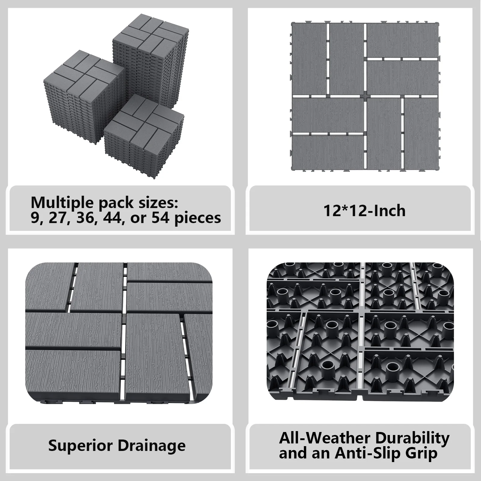 Plastic Interlocking Deck Tiles (44 Pack) - 12''x12'' Outdoor Patio Flooring, Decking Tiles for Poolside, Backyard, Balcony