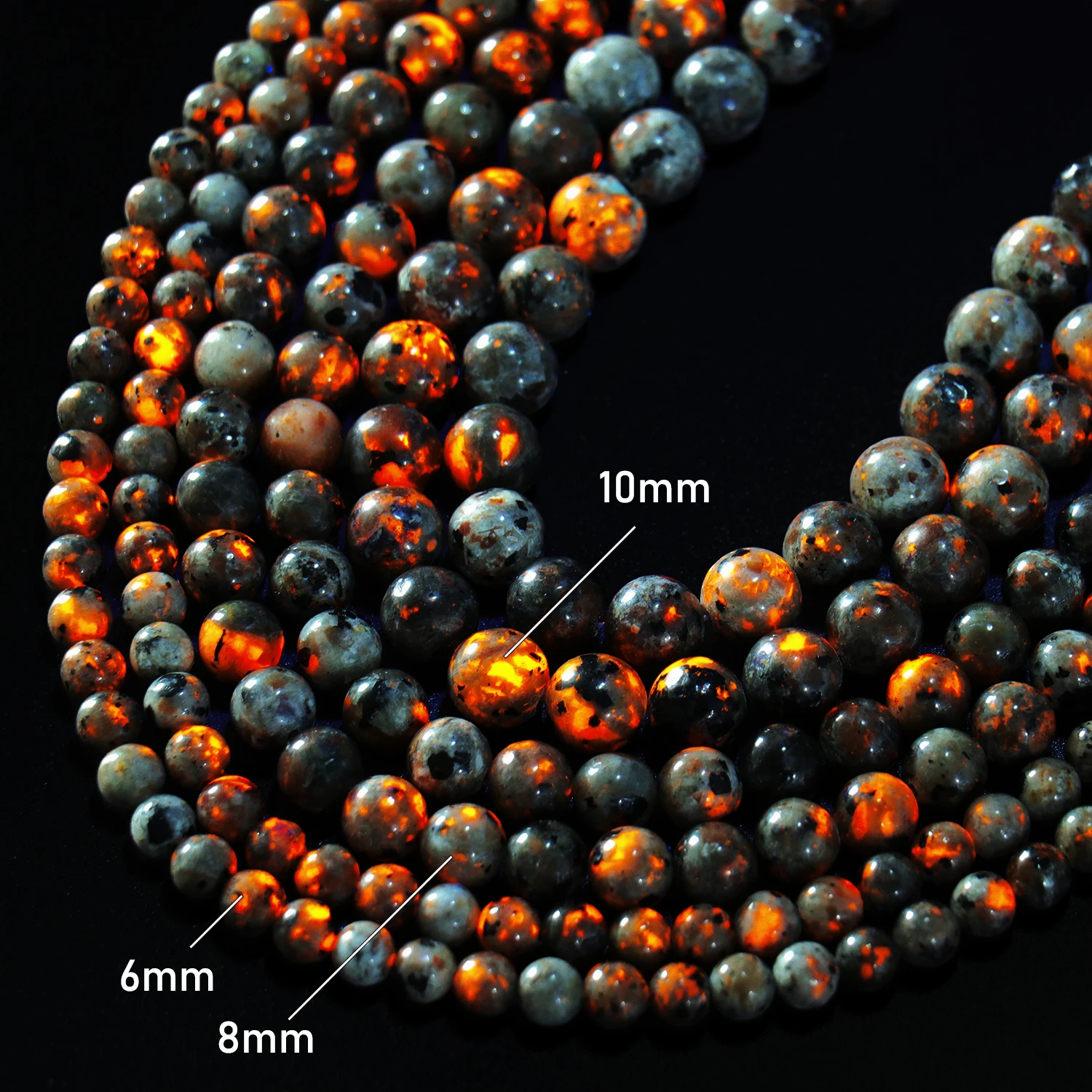 Natural Stone Round Flame Stone Beads Yooperlite Fire Sodalite Loose Spacer Beads for Jewelry Making DIY Bracelets Necklace 15''