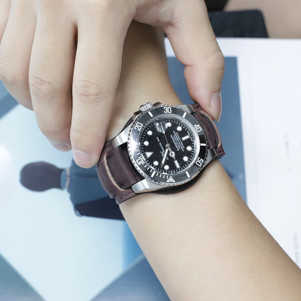 Genuine Leather Watchband 18mm 19mm 20mm 21mm 22mm Watch Strap Men Wristband with Mat Handmade Crazy Horse Leather Bracelet