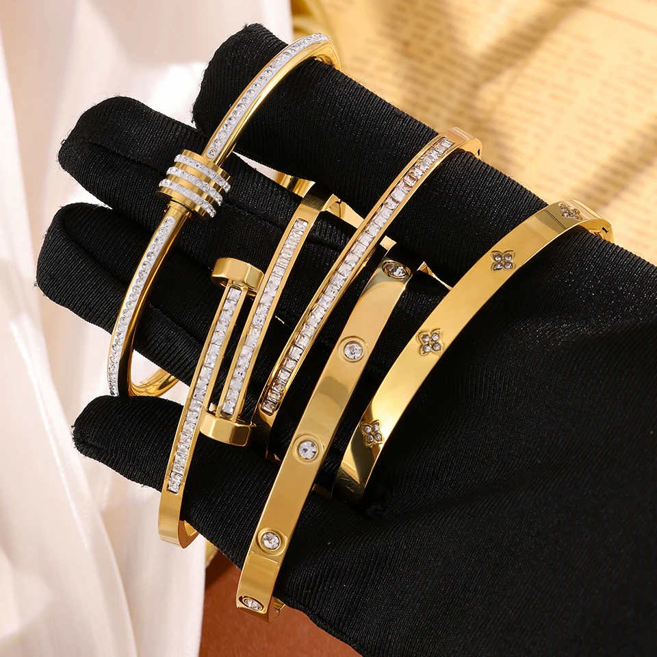 ALI shop - search results ... ... Titanium Steel Stacked Bracelet Couple's Shiny Zircon Inlaid Stainless Steel Bangles Gold Color Female Jewelry Gift ::: 2021 ::: :::