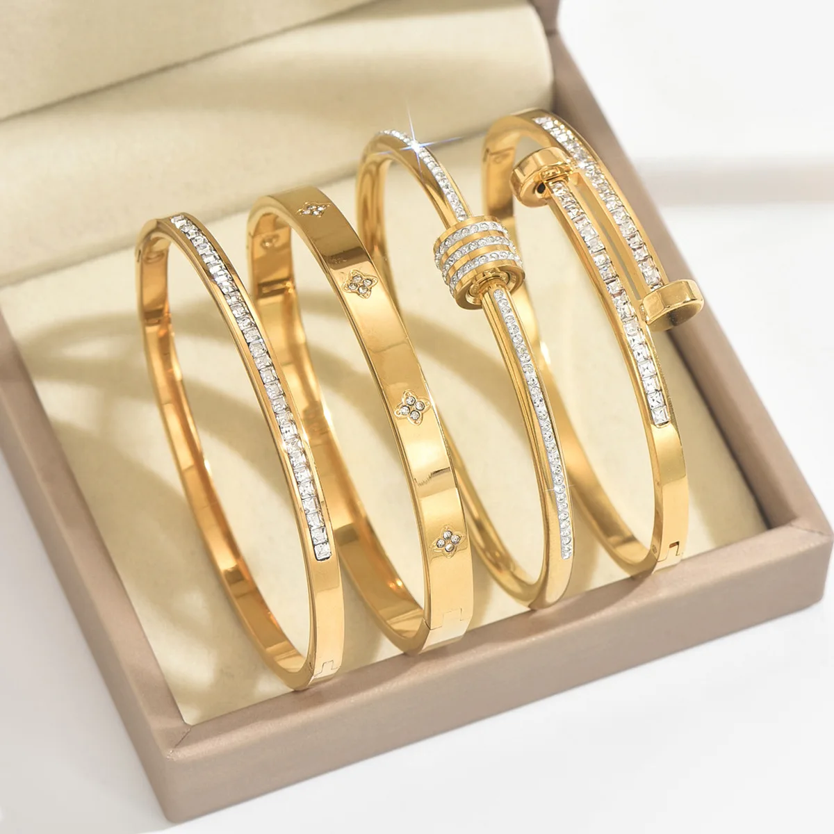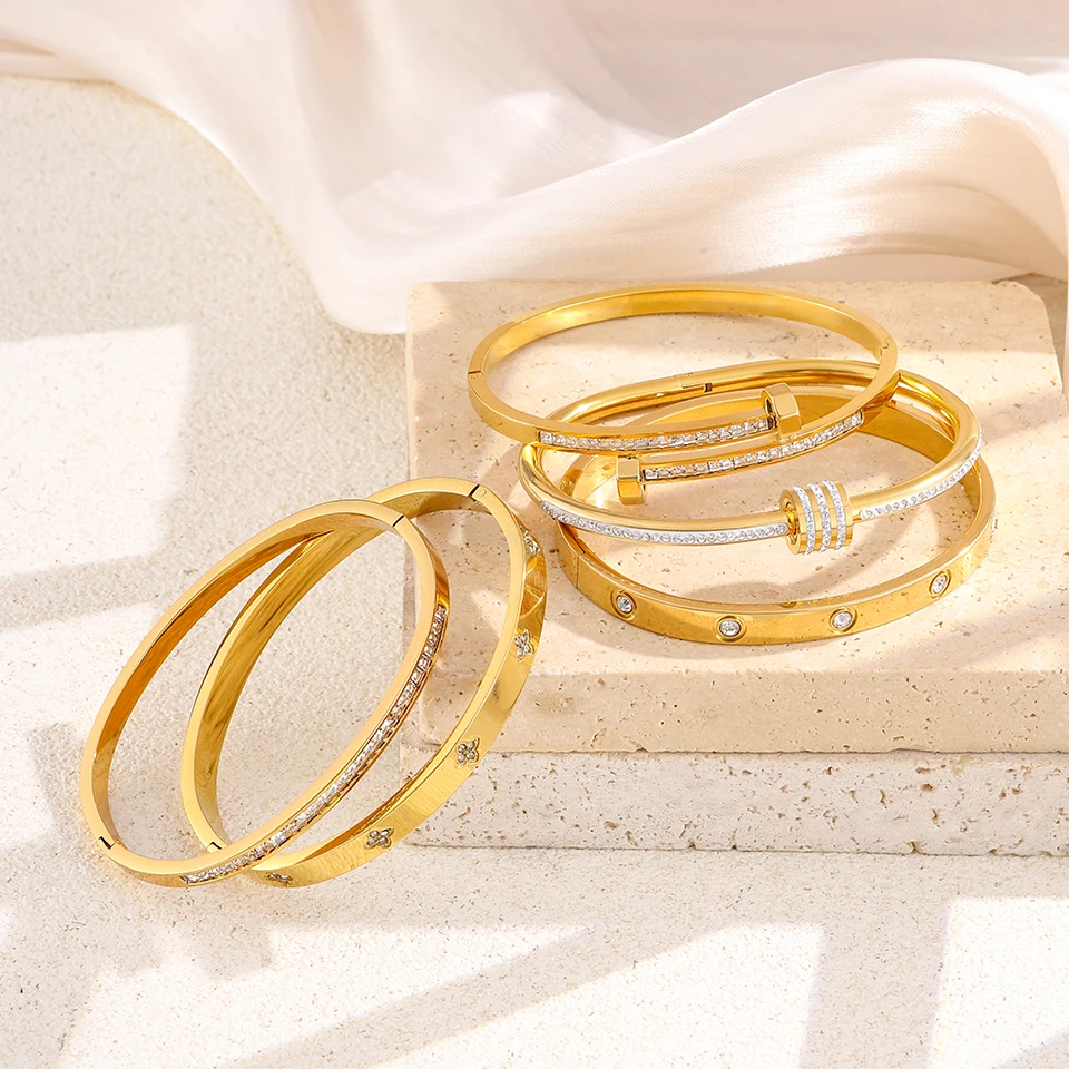 Titanium Steel Stacked Bracelet Couple's Shiny Zircon Inlaid Stainless Steel Bangles Gold Color Female Jewelry Gift