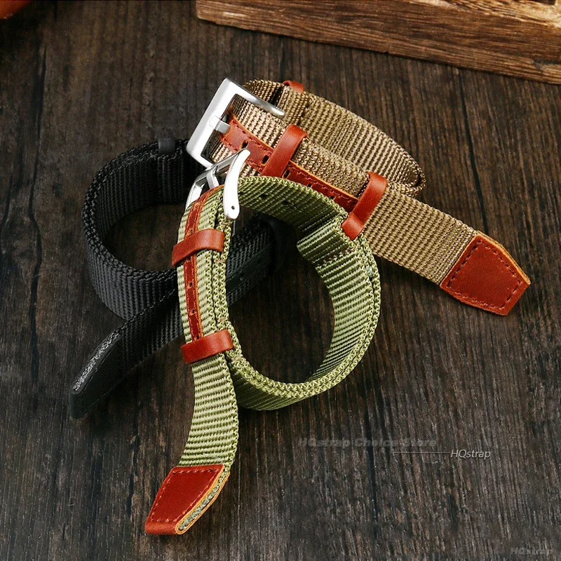 Green Black Grey 20mm 22mm Nylon Leather Strap for Women Men Sport Watchband Soft Bracelet for Hamilton Khaki Field 2030