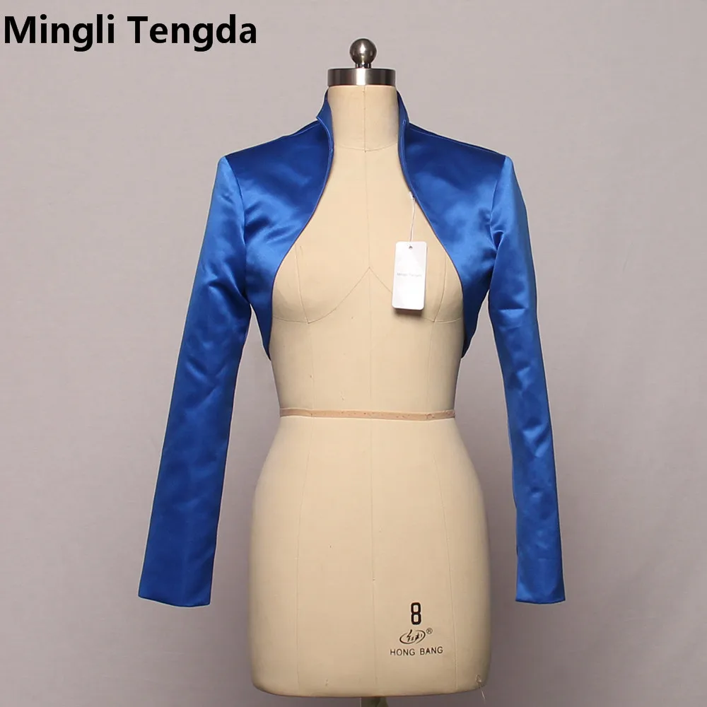 Mingli Tengda Custom Made Bridal Satin Jacket Wrap Wedding Fashion Collar Shrug Long Sleeves Bolero Jacket Women