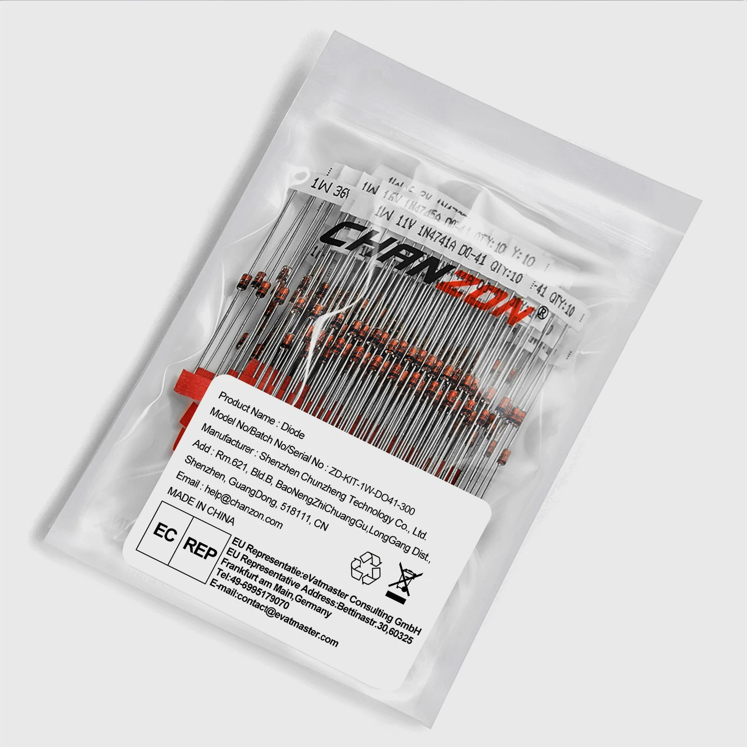 30 Values 1W Zener Diode Assorted Kit 3V 3.3V 3.6V 5.1V 5.6V 7.5V 10V 12V 13V 15V 16V 18V 20V 22V 24V 30V 33V 47V Assortment Set