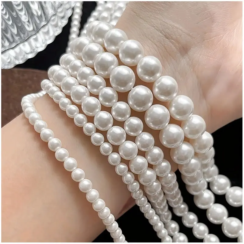 Natural White Shell Pearl Round Loose Beads For Jewelry Making Choker Making Diy Bracelet Jewellery 2/3/4/6/8/mm Wholesale15''