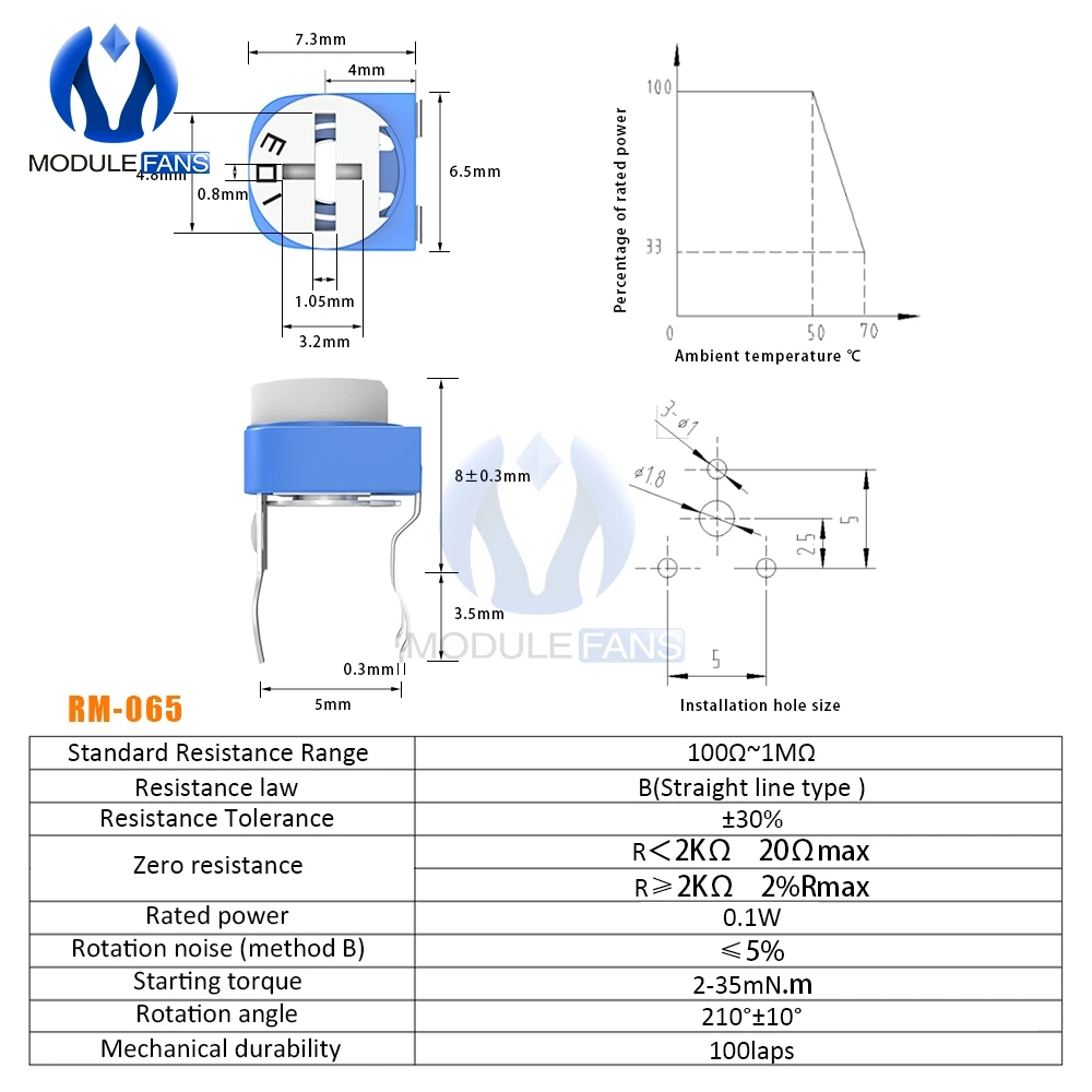 100PCS RM065 RM-065 Trimpot Trimmer Potentiometer Variable Resistor 100R 200R 500R 1K 2K 2.2K 3K 5K 10K 20K 50K 100K 500K 1M Ohm