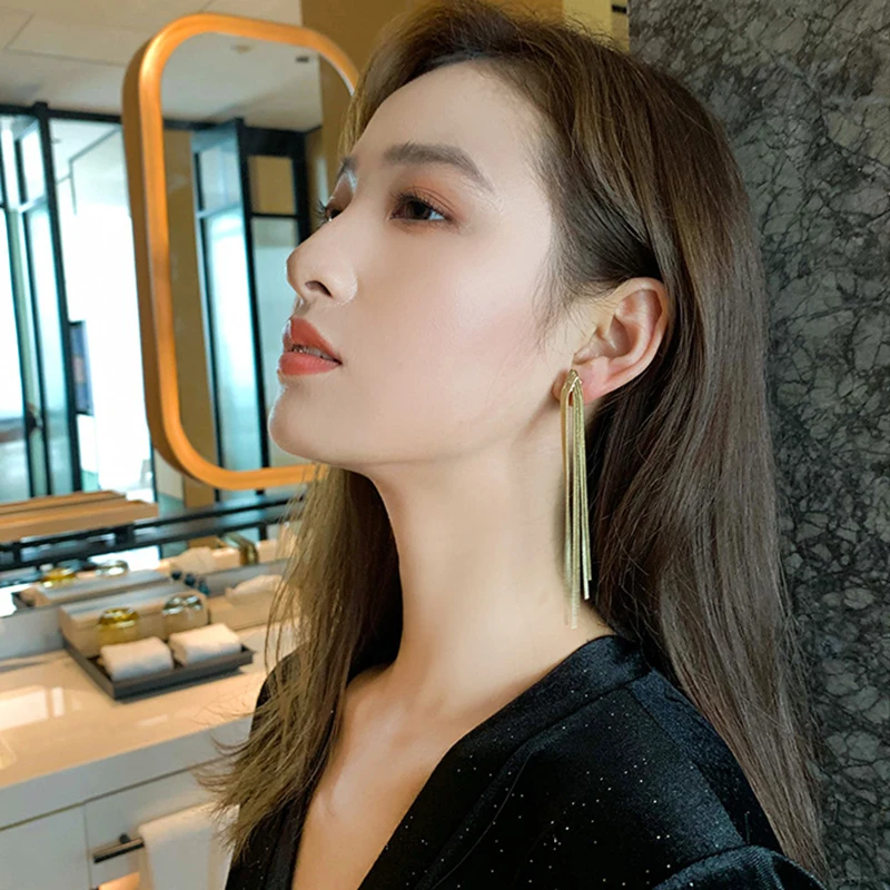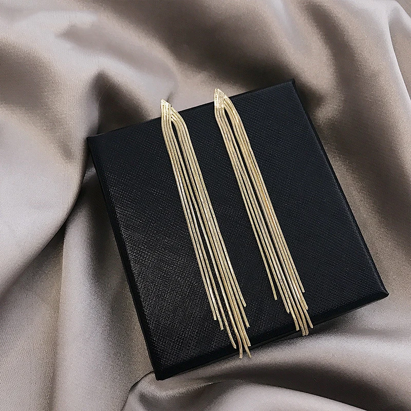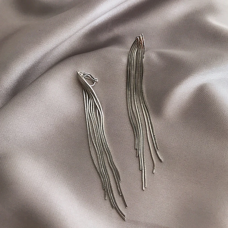 Vintage Long Metal Chain Tassel Clip on Earrings 2023 Bohemian Geometric Without Piercing Ear Clips for Women Party Jewelry Gift
