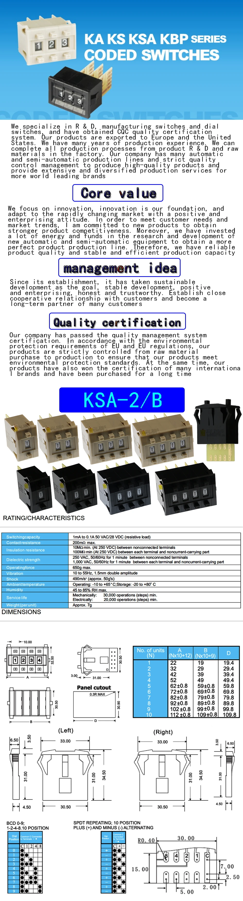 KSA-2/B BCD Code Binary Output Pushwheel /Thumbwheel 8421C Gold Plated terminal block 0-9 Digits Decimal Code Beige Black