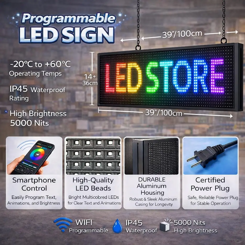Outdoor Full Color P10 Wifi Scrolling Texts Messages Board Programmable Led Sign (1000x360mm)