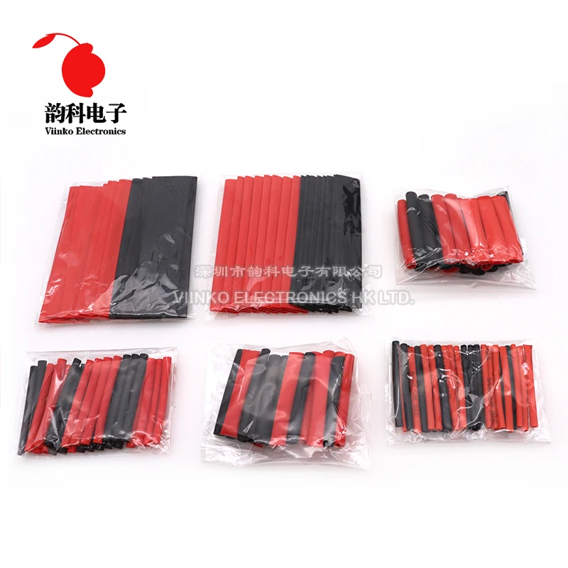 127pcs 2:1 Heat Shrink Tube Insulation Sleeving Red Black Polyolefin Assortment Kit Electrical Wire Cable Shrinkage heatshrink