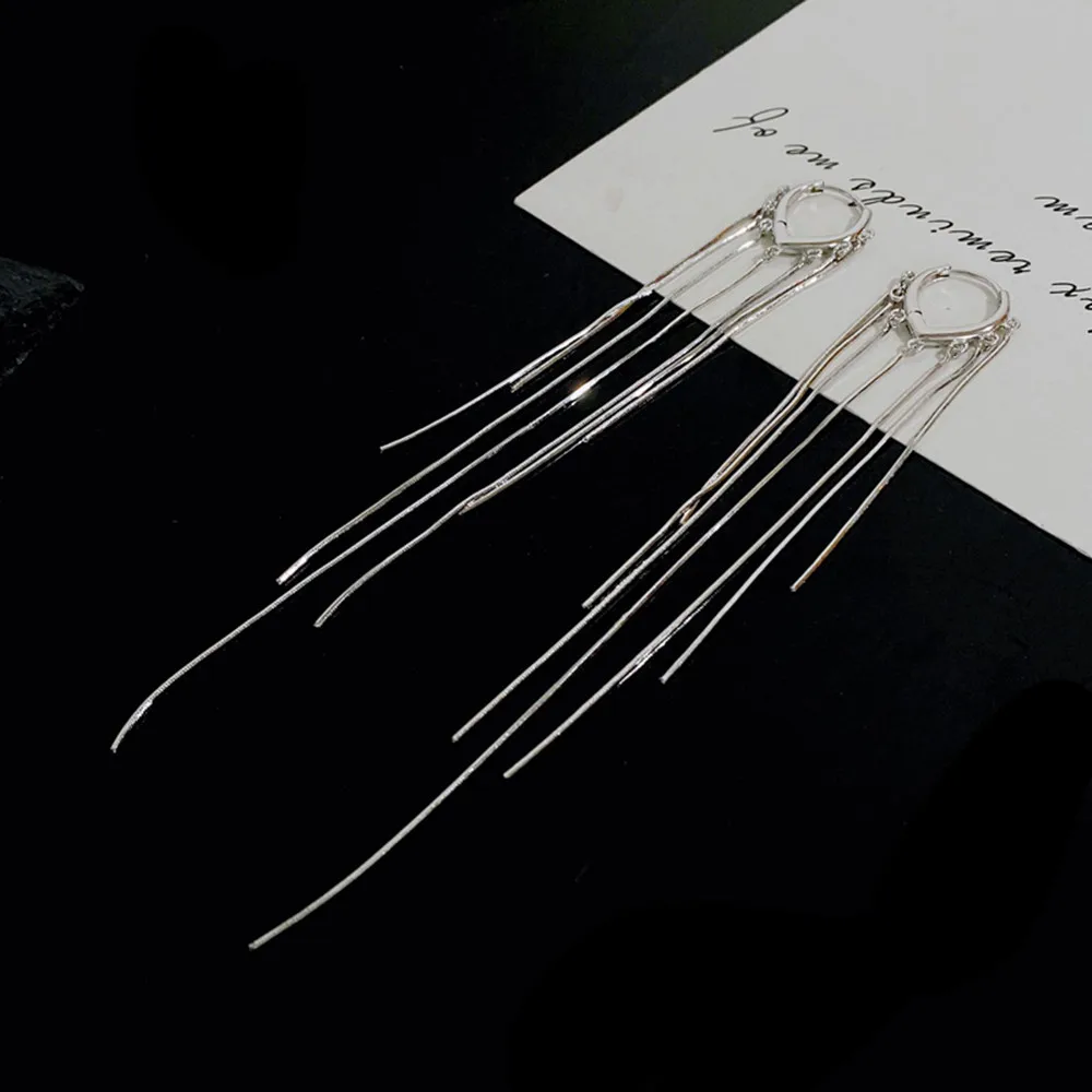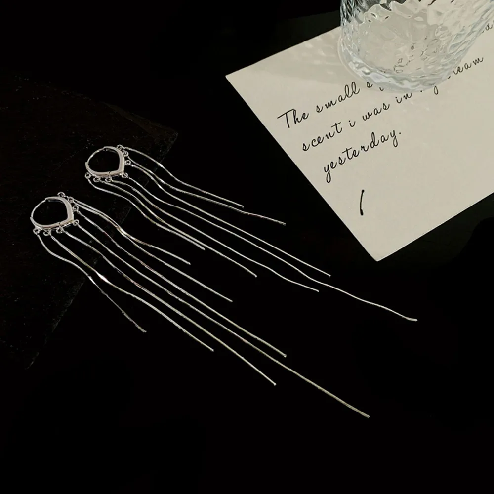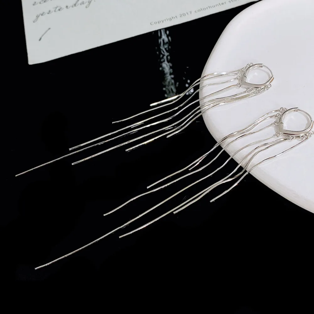2023 Exaggerated Long Silver Colour Tassel Earrings for Woman Simple Personality Fashion Earrings Wedding Jewelry Birthday Gift