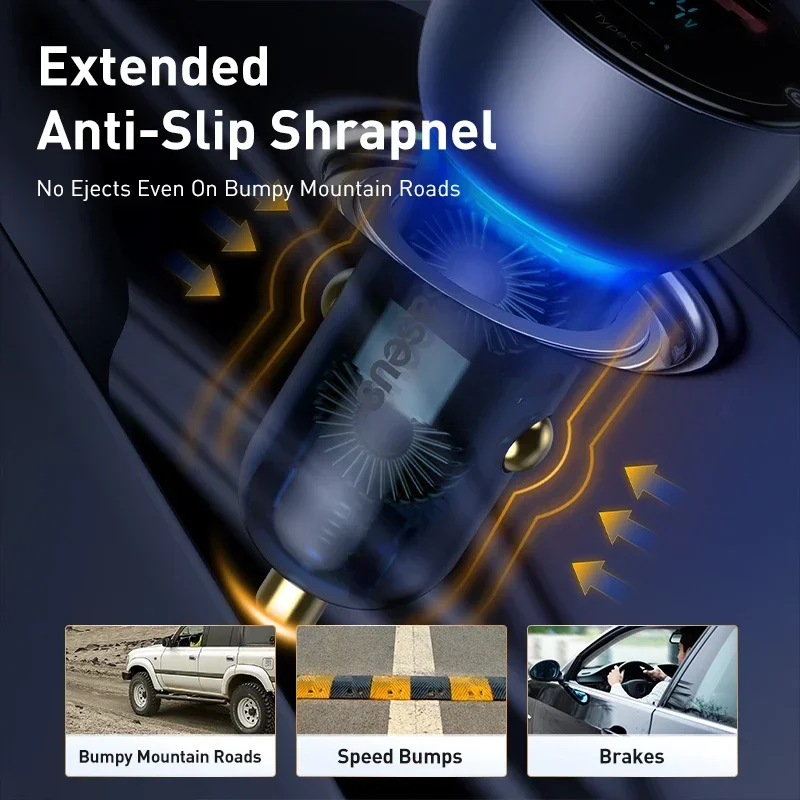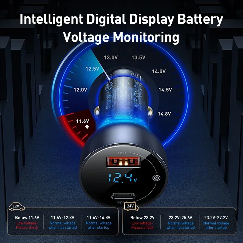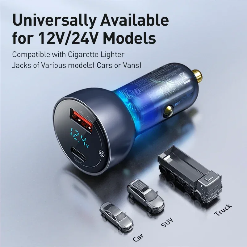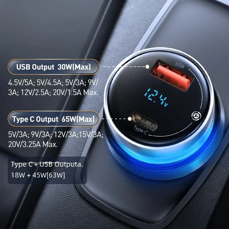 Baseus 65W PD Car Charger QC 4.0 QC 3.0 LED Display Type-C Fast Quick Charger For iPhone 16 15 Xiaomi Samsung USB Phone Charger
