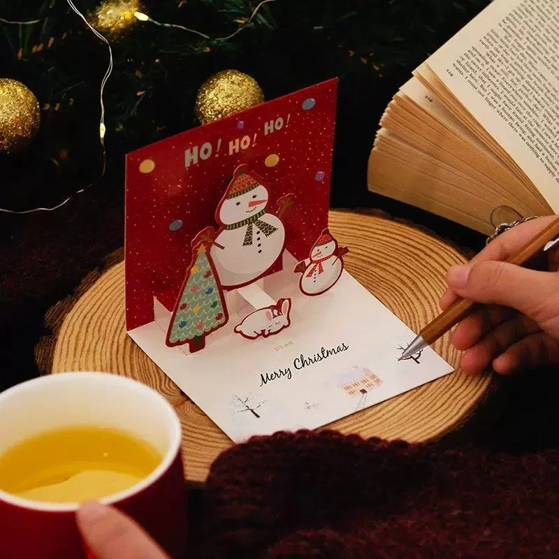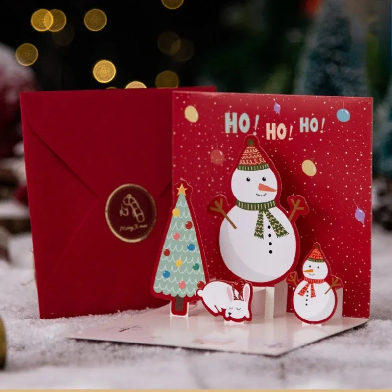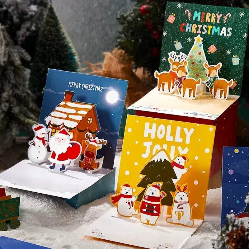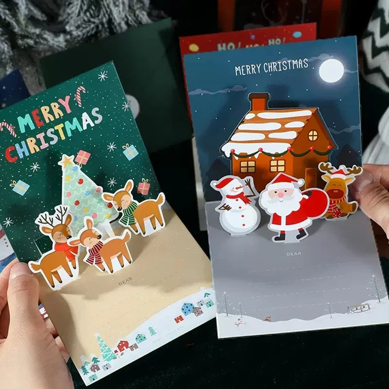 Christmas Card 3D Folding Merry Christmas Greeting Cards 2023 Happy New Year Xmas Party Navidad Festival Decors Greet Gift Cards