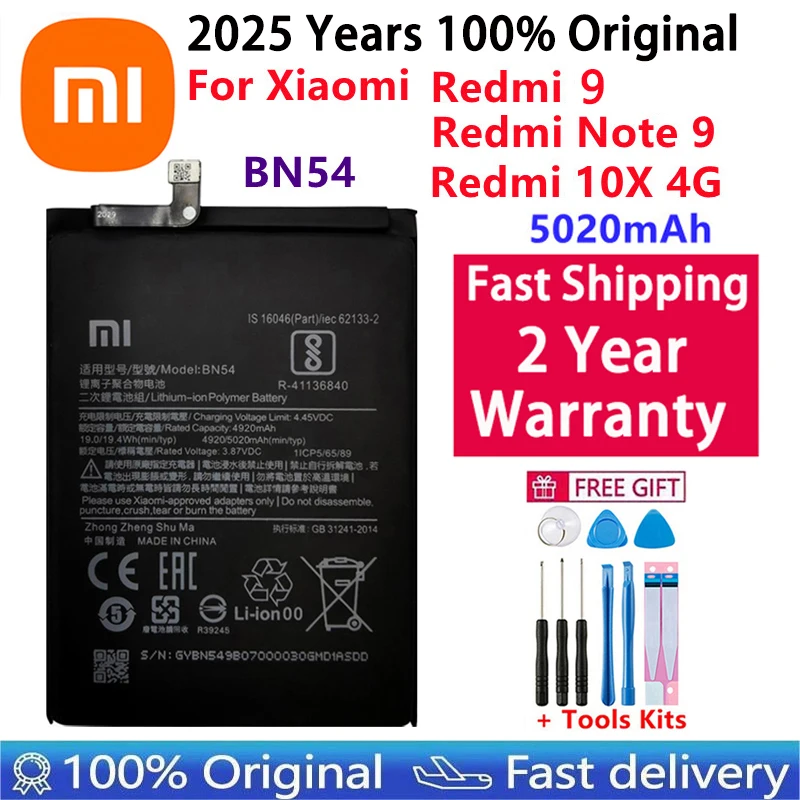 100% Original 5020mAh BN53 BN54 BN55 Replacement Battery For Xiaomi Redmi note 9 10 Pro 9S Redmi 10X 4G Bateria Phone Batteries
