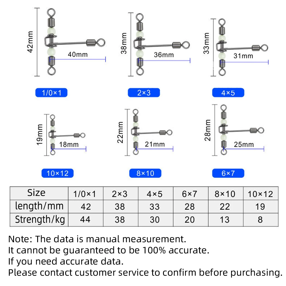 DNDYUJU 10pcs 3way Luminous T-shape Cross-Line Rolling Swivel With Pearl Beads Fishing Swivels Fishhooks Fishing Connector