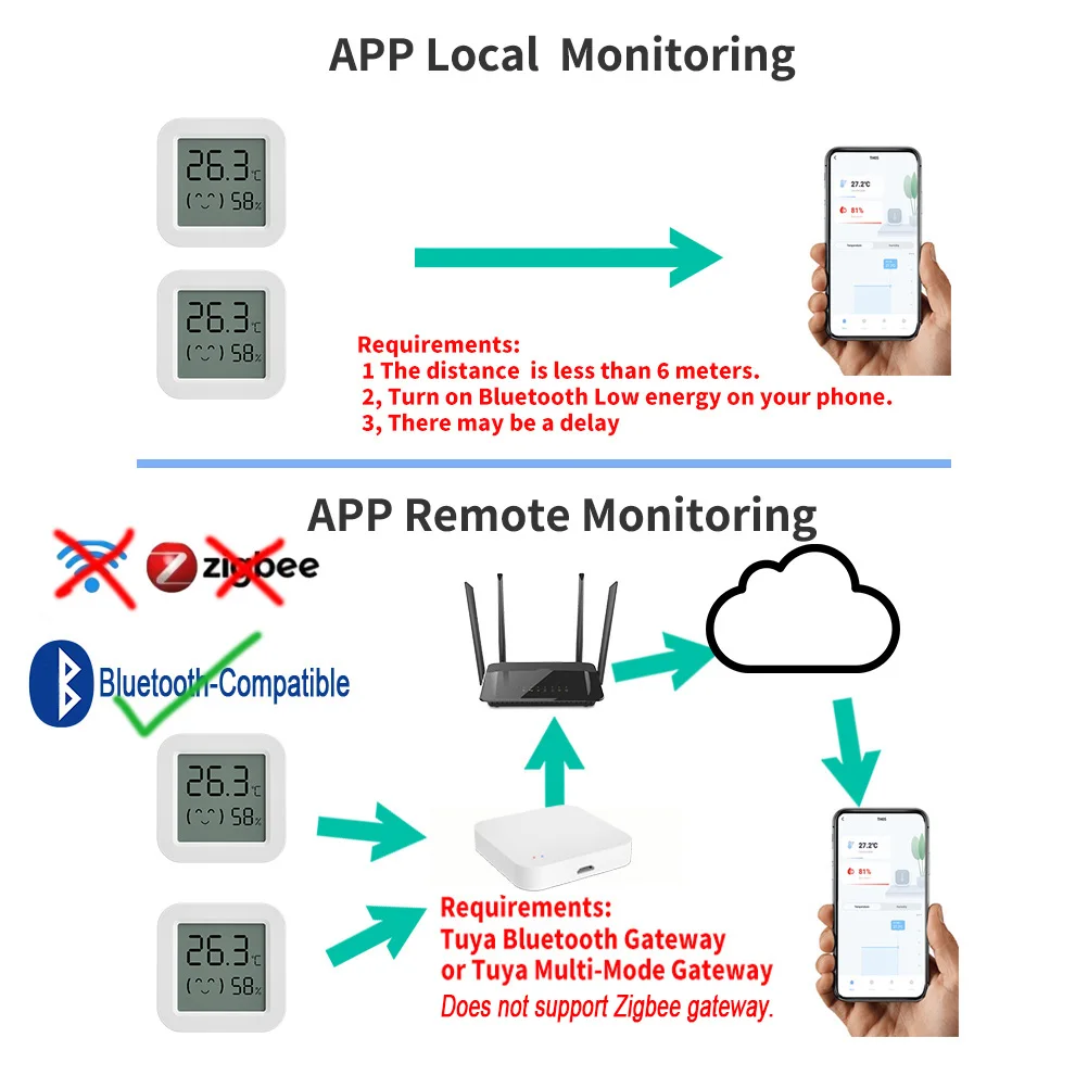 Tuya Temperature Humidity Sensor Mini LCD Digital Display Compatible with Bluetooth APP Remote Control Thermometer Hygrometer