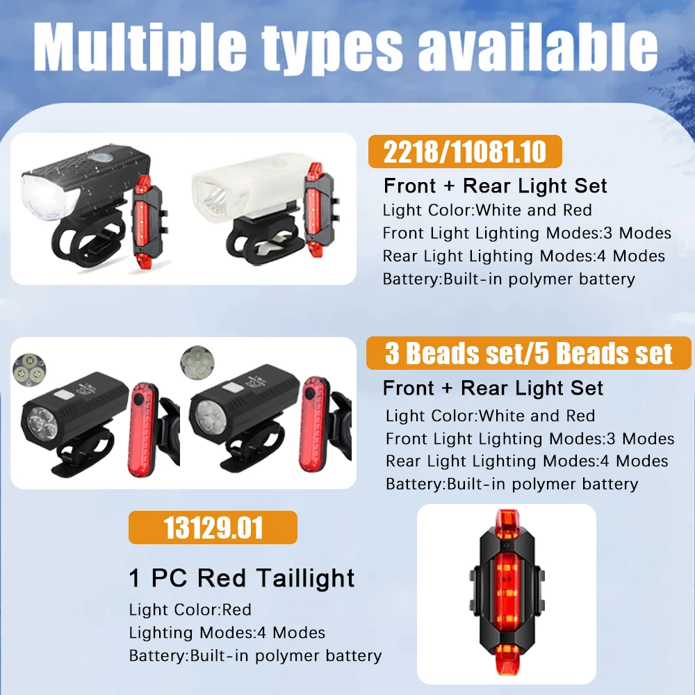 USB Rechargeable Bike Light Front Light Red Taillight Easy to Install 3 Modes Bicycle Accessories for the Bicycle