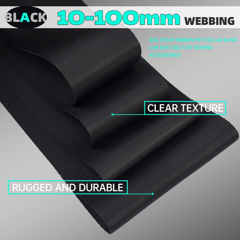 5M 10-100mm Black Nylon Webbing Tape Backpack Strap Pet Collar Safety Belt Ribbon Band DIY Bag Clothing Sewing Accessories