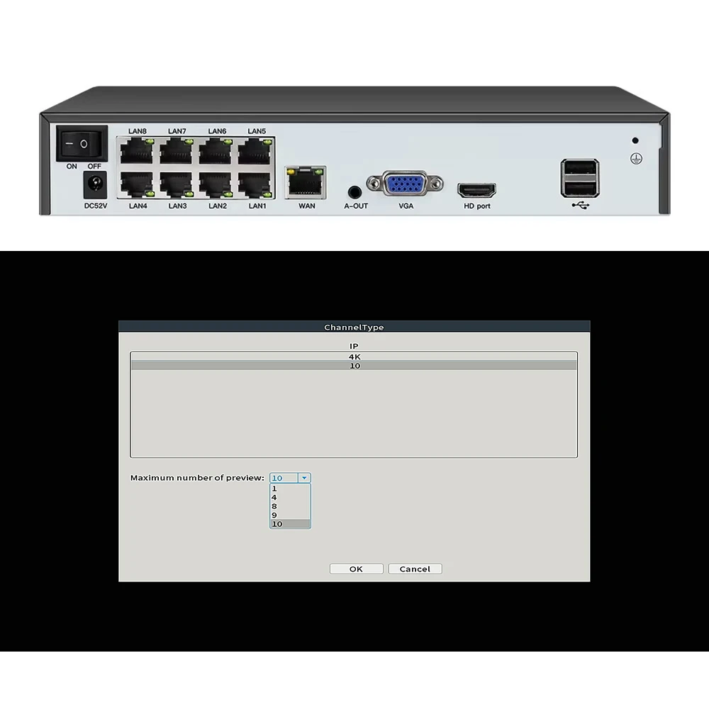 Face detection H.265 8ch*4K 4ch/8ch PoE Network Video Recorder Surveillance PoE NVR 4/8Channel For HD 8MP 5MP IP Camera