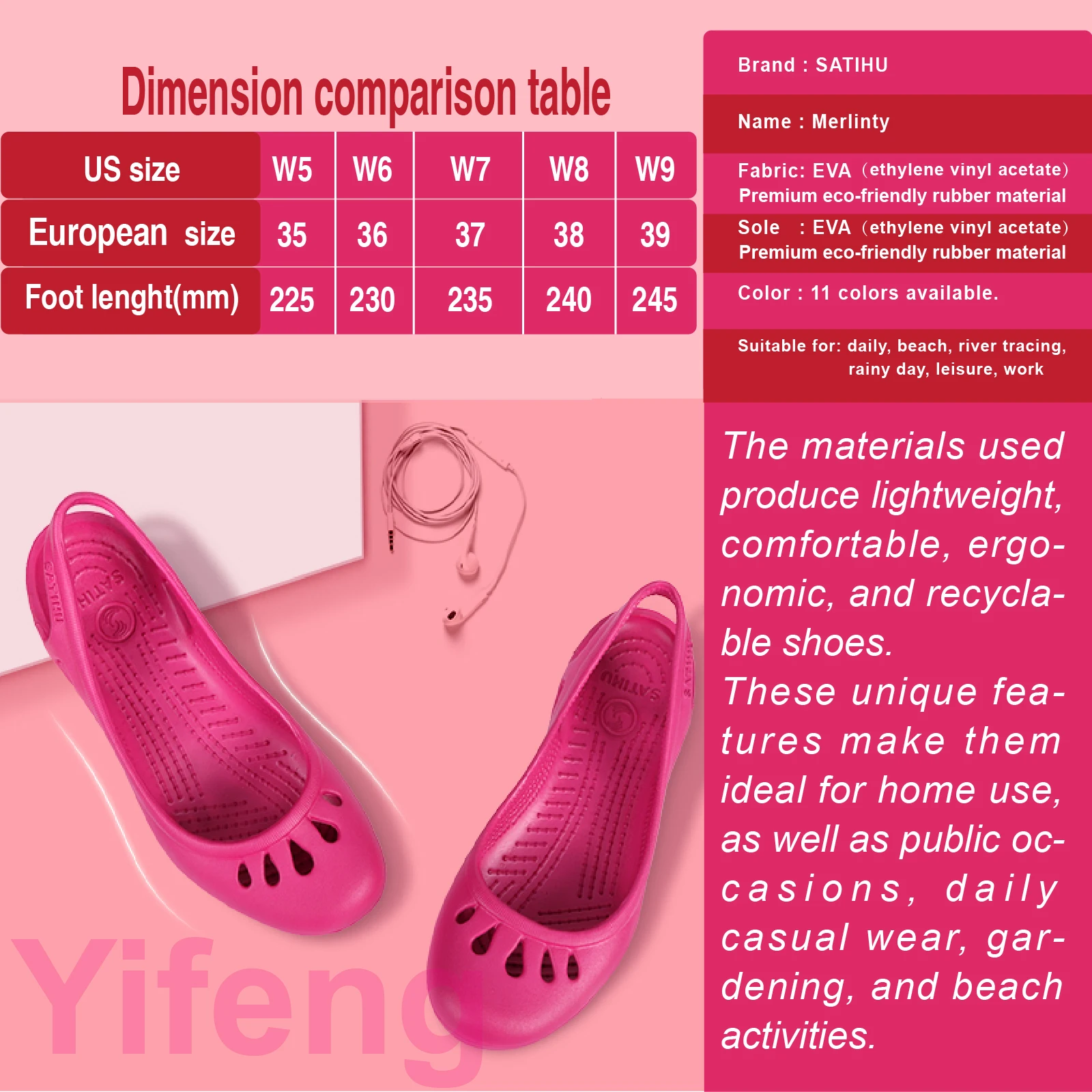 Ultra-light women's clogs:Breathable,soft,elastic,waterproof,non-slip,easy to clean,versatile and stylish.For commuting,work
