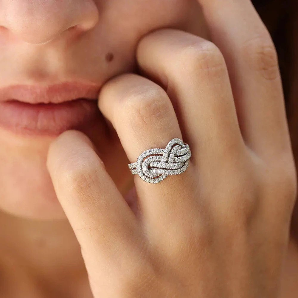 Huitan 2023 New Woman Ring Twist Infinite Shape Crystal Cubic Zirconia Rings Exquisite Female Wedding Bands Fashion Jewelry Bulk