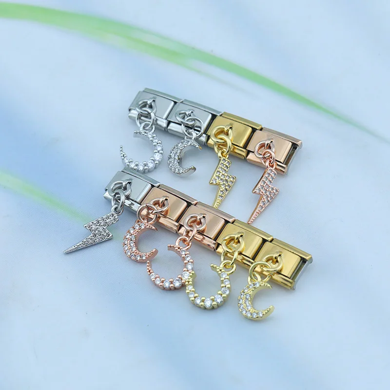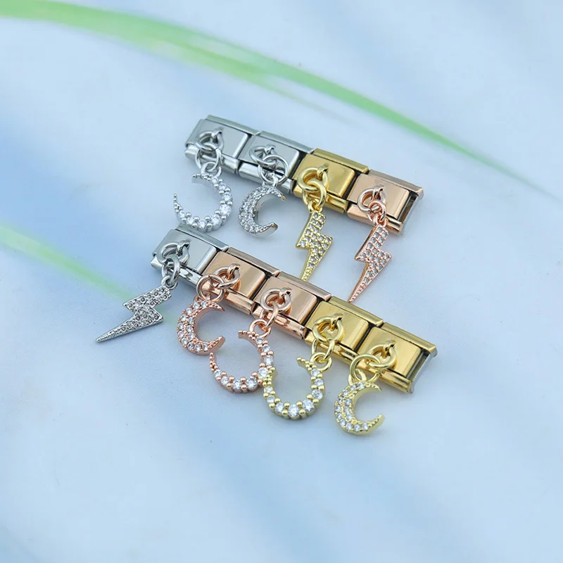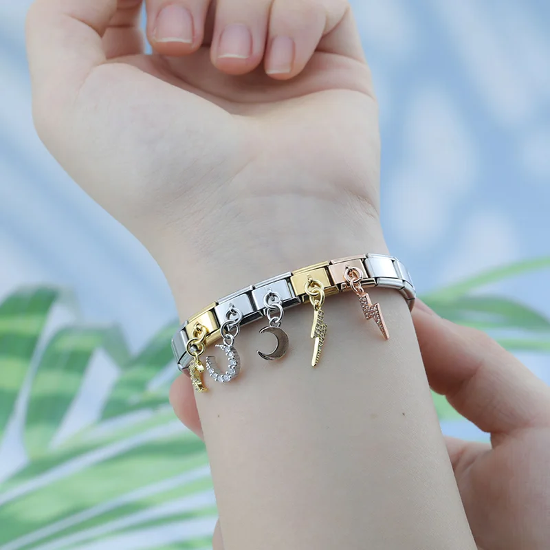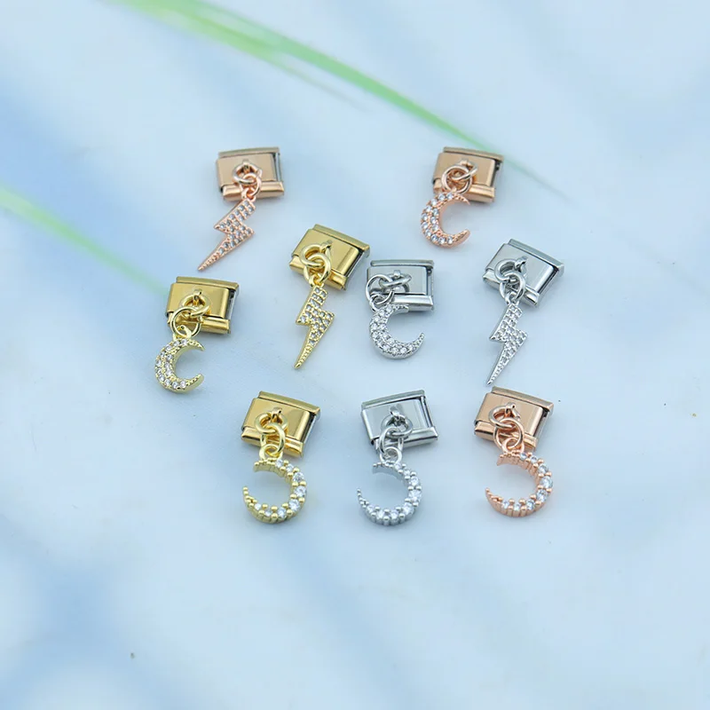 aliexpress , ali , shop , ali shop , online , prodavnica , online shop , online prodavnica , kupujem , prodajem , Hapiship 2023 New Daisy Fashion Lightning Moon Dazzling CZ Italian Charm Links Fit 9mm Bracelet Jewelry DIY Making DJ612