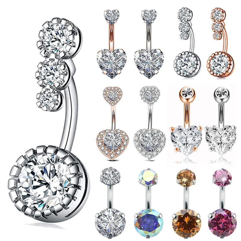 2023 Zircon Belly Button Rings for Women Girls Piercing Navel Ring Bar Drop Dangle Belly Navel Rings Ashion Body Jewelry