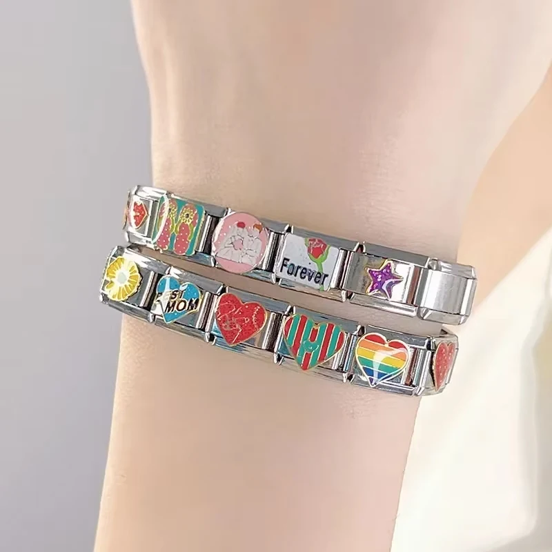 Hapiship 2023 New Fashion Cat Star Guitar Slippers Charm Italian Links Fit 9mm Bracelet Stainless Steel Making Jewelry DJ644-B