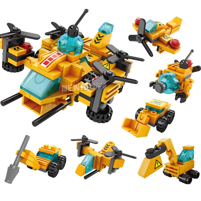 6in1 NEW Aircraft Helicopter Spiral Mini Loader Truck Classic Model Building Blocks Sets Bricks Toy City