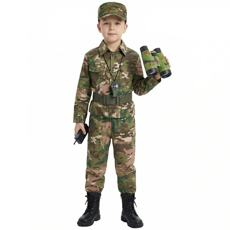 Kids Soldier Costume for Kid Party Army Costume camouflage Costumes for Boys Jungle Field Sniper Set with Pistol Compass Whistle
