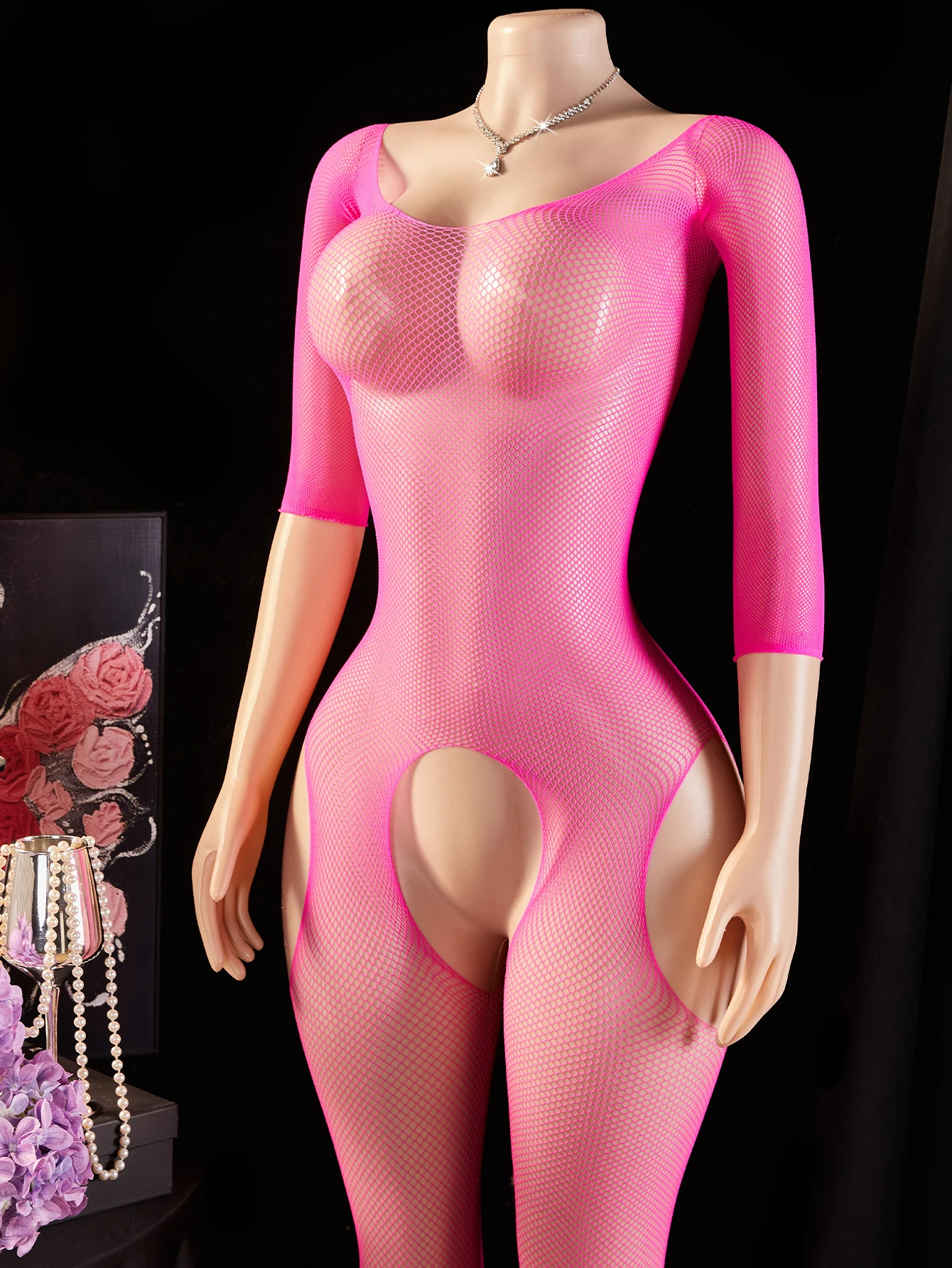 One Piece Crotchless Bodystocking For Transparent Lingerie iest Bodysuit Costumes Rose Full Body Stockings