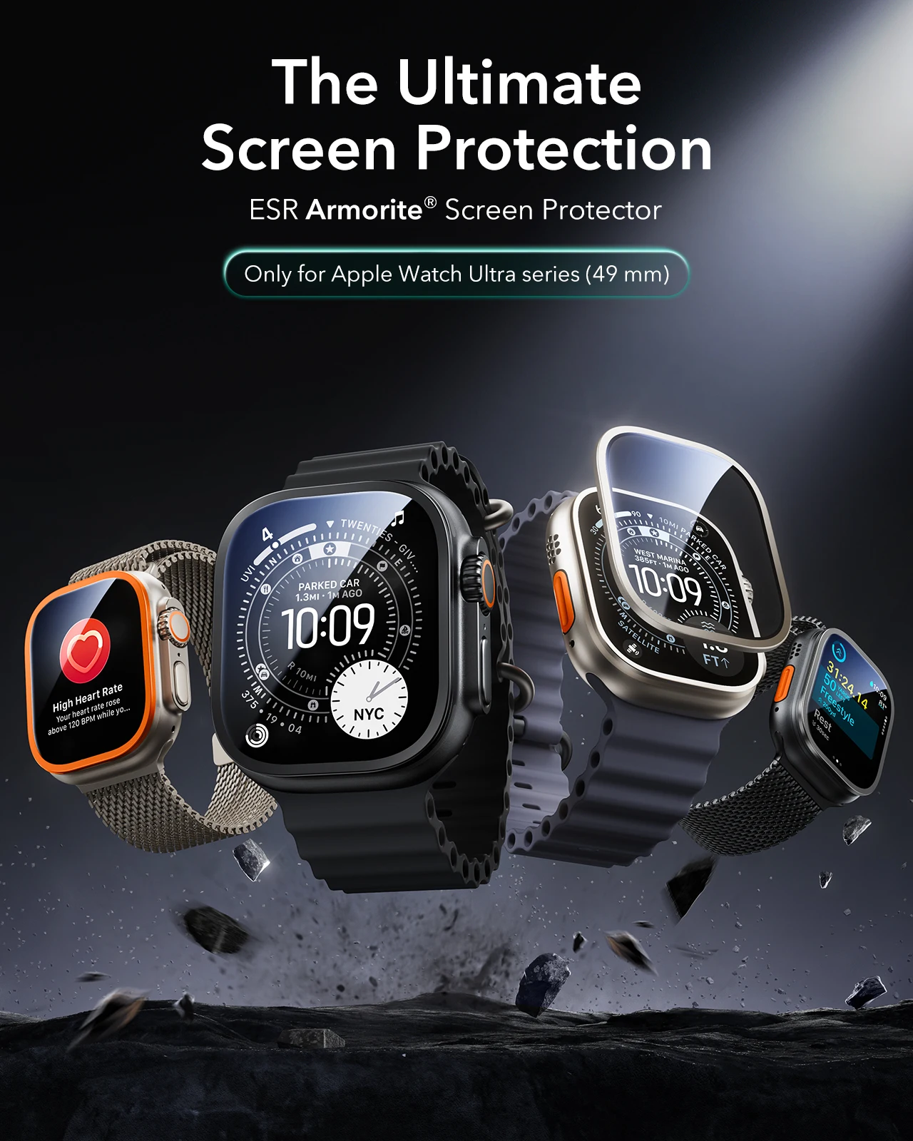 ESR Screen Protector for Apple Watch Ultra 3/Ultra 2/Ultra (2025/2024/2023/2022) 49 mm 2pcs Armorite Tempered Glass Film