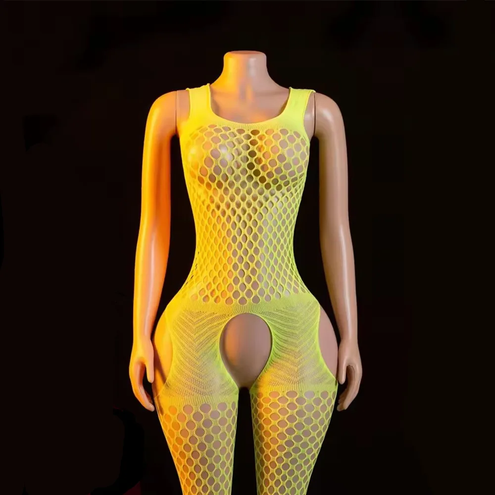 Bodystocking Lingerie Mesh Open Crotch Bodysuit Women Crotchless Underwear Costumes Sleeveless Catsuit Sleepwear
