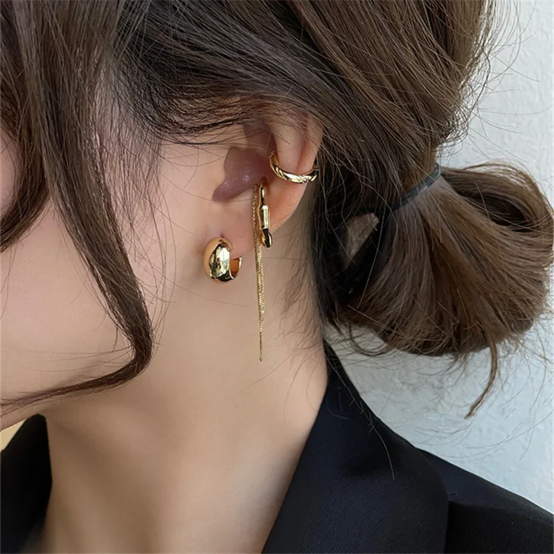 ALI shop - rezultati pretrage ... ... 4PCS/SET New Design Gold Silver Color Metal Geometric Irregular Tassel Chain Clip Earrings for Women Non Pierced Ear Cuff 2023 ::: 2021 ::: :::