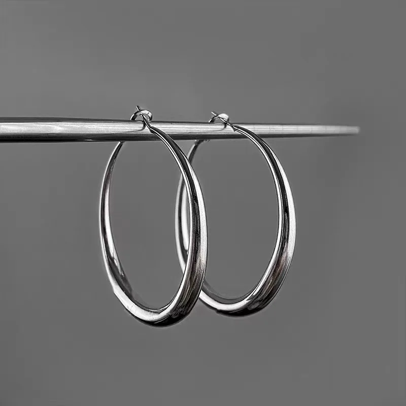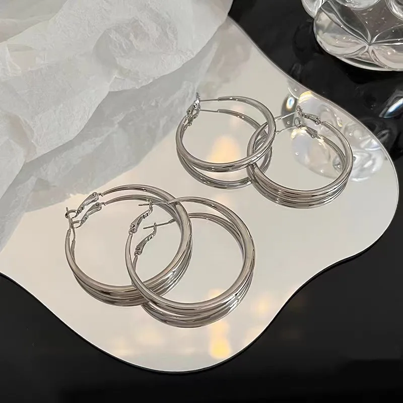 2023 New Big Circle Hoop Earrings for Women Trendy Exaggerated Silver Gold Color Metal Geometric Smooth Round Earring Jewelry
