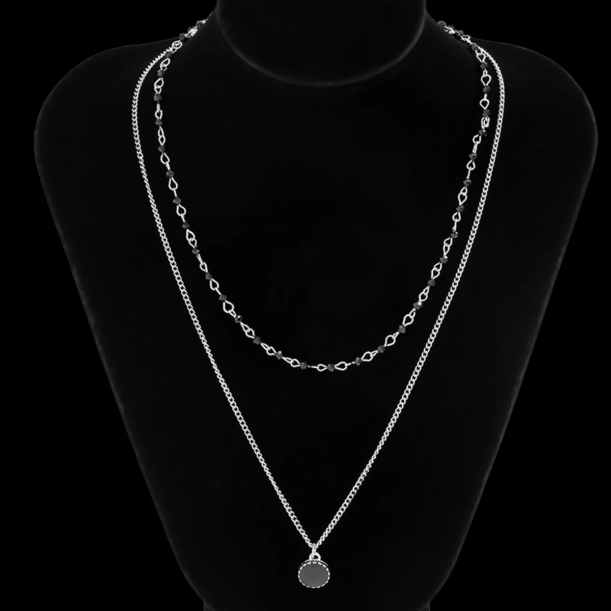 Layered Small Beads Chain with Black Coin Pendant Necklace Men Trendy Separable Choker Necklace 2023 Fashion Jewelry Accessories