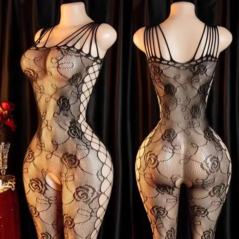 Hot Lingerie For Women Body Stocking Crotchless Silk Underwear Black Porn Babydoll Lenceria Bodysuit Curvy Costumes