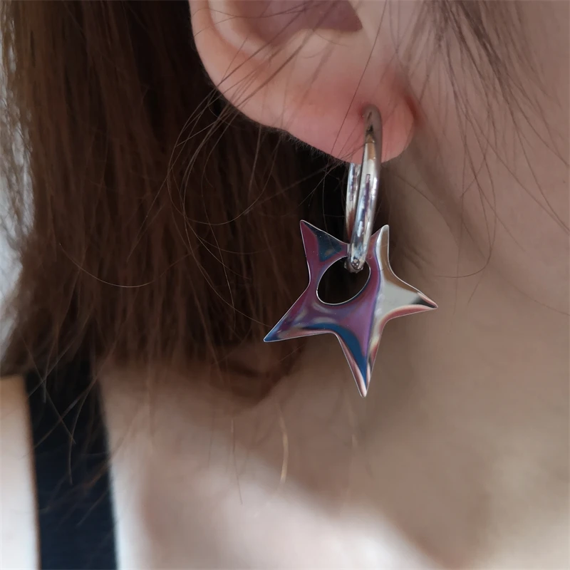 Korean Fashion Pentagram Pendant Earrings 2023 Trendy Design Star Hoop Earrings for Women Girls Aesthetic Jewelry Wholesale