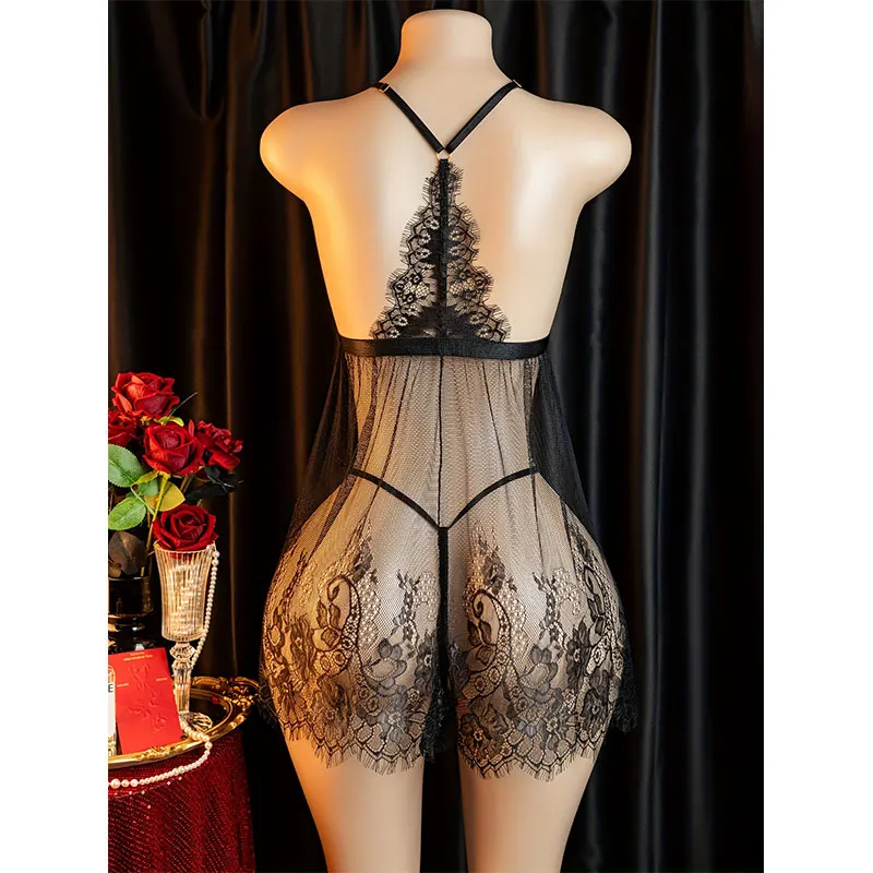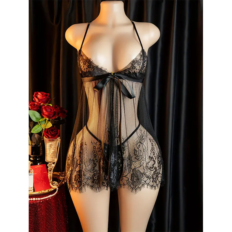 Suspender Underwear Front Open Lace-Up Dress Clothes For hot Women Lace Black Plus Size Nightgowns Open Lingerie Skirt Set