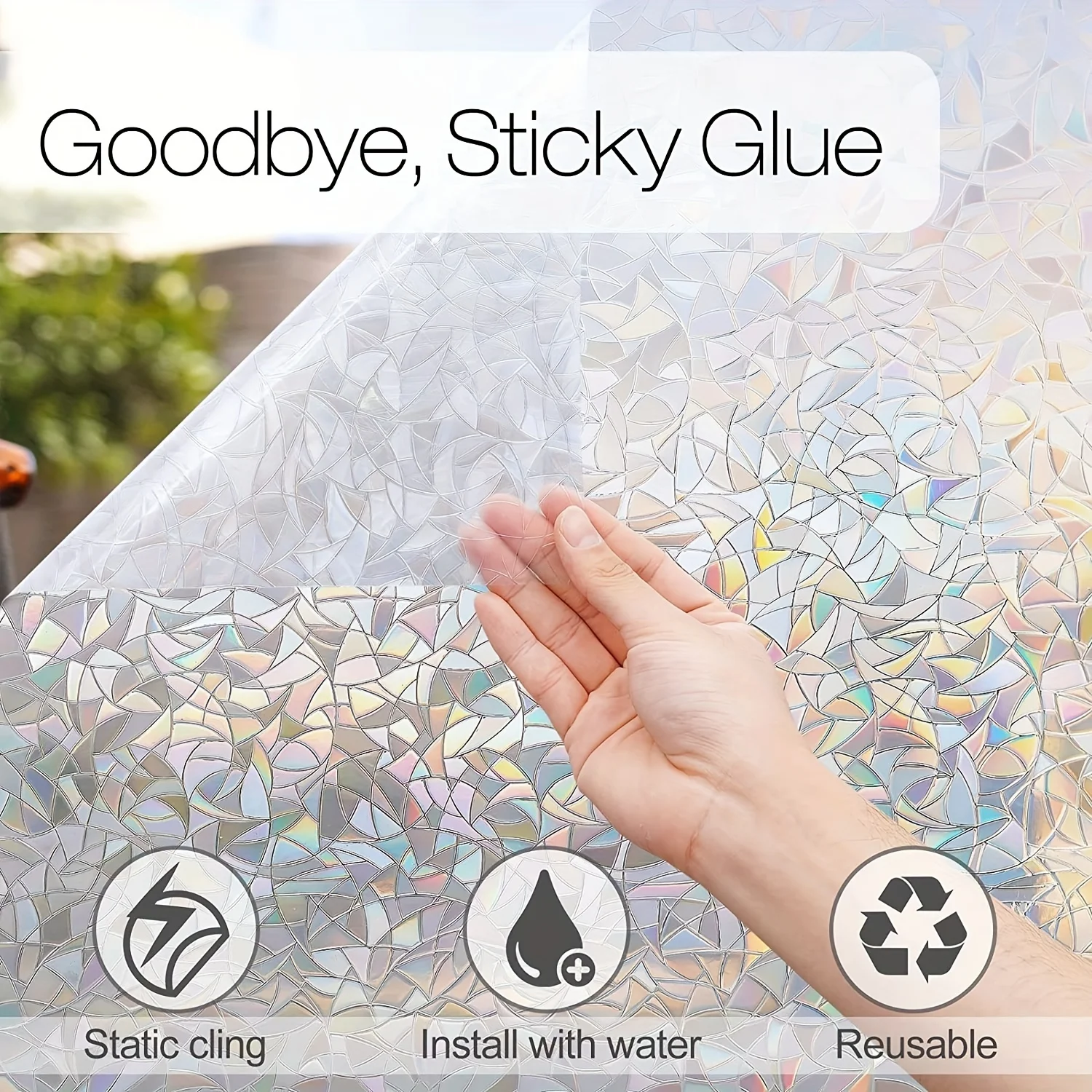Window Privacy Film, Rainbow Window Clings, 3D Decorative Window Vinyl, Stained Glass Window Decals, Static Cling Window Sticker