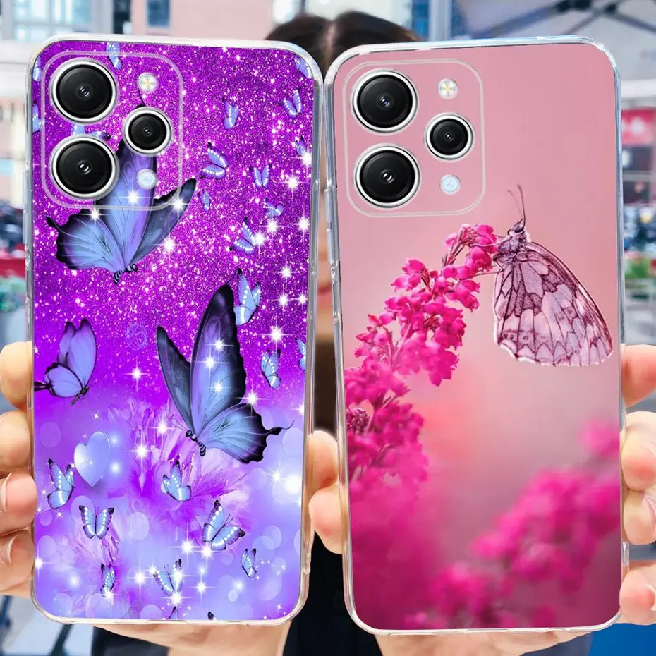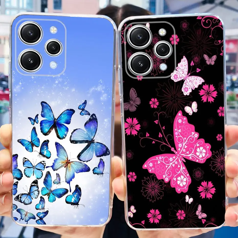 For Xiaomi Redmi 12 2023 Cute Cat Flower Painted Phone Case For Redmi12 4G Global Soft Silicone TPU Cases