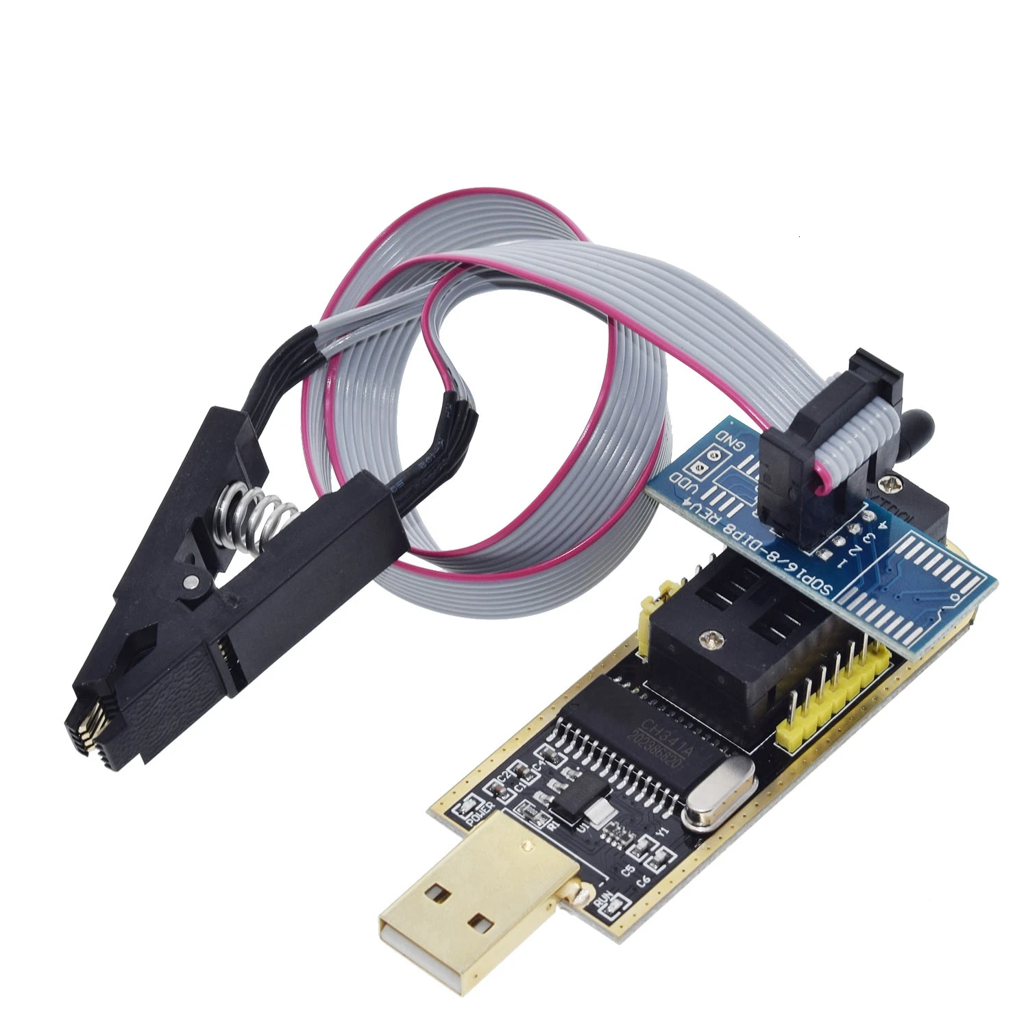 DIYTZT CH341A/CH341B 24 25 Series EEPROM Flash BIOS USB Programmer Module SOIC8 SOP8 Test Clip For EEPROM 93CXX / 25CXX / 24CXX