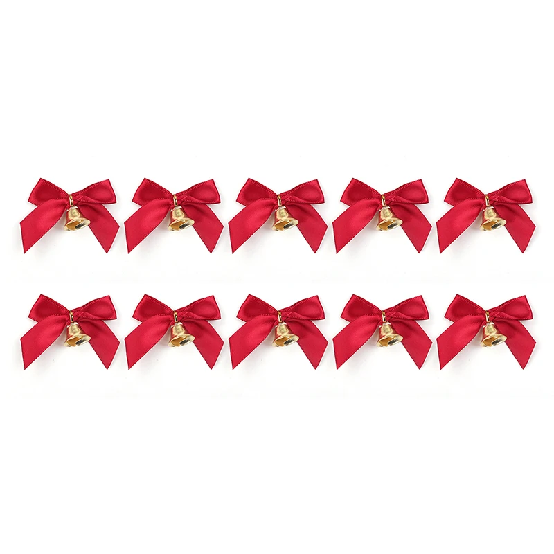 Christmas Bow Tie 10 Pcs Delicate Bowknot Bells Christmas Gift Bows With Small Bells DIY Bows Craft Christmas Tree Decoration