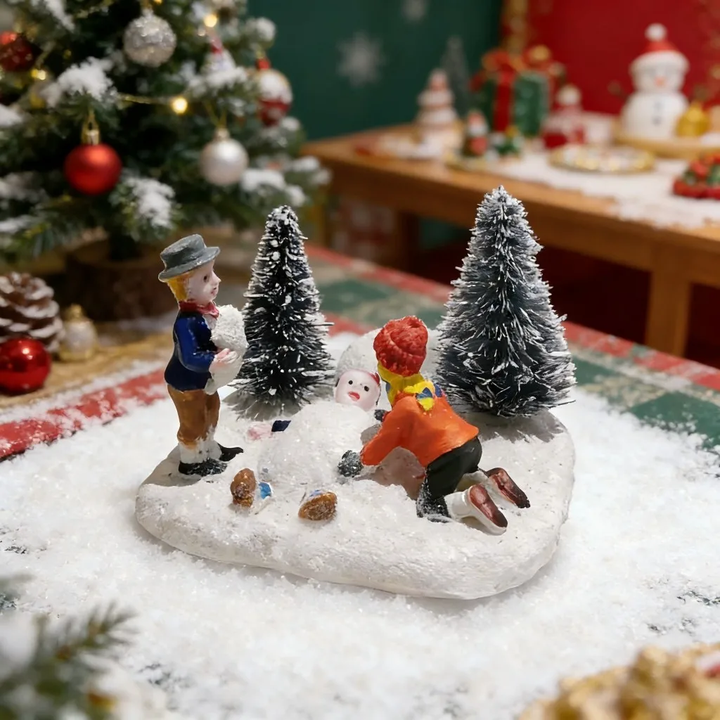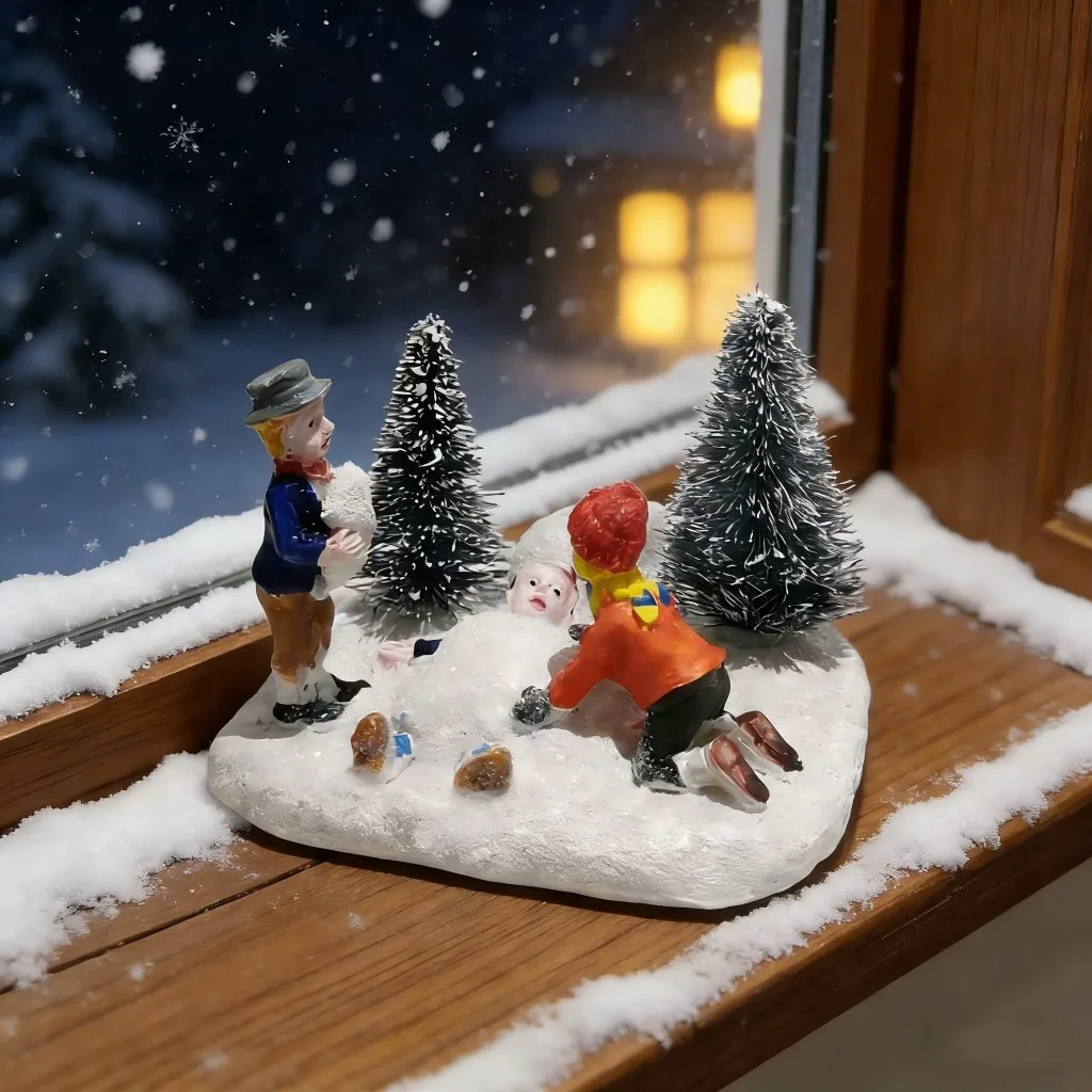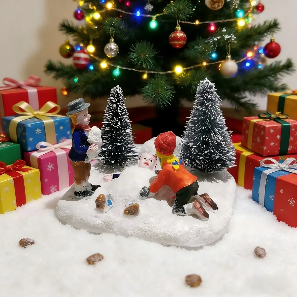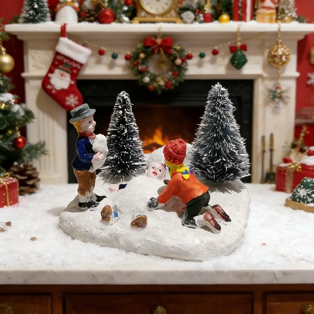 Christmas Village Set Accessories, Kids Playing Figurine, Collectible Building Scene Decoration, Home Fireplace, Holiday Decor