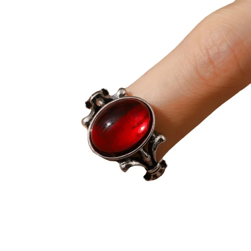 2023 New Retro Palace Style Inlaid Red Oval Zircon Opening Adjustable Women's Ring Creative Wedding Party Jewelry Birthday Gifts
