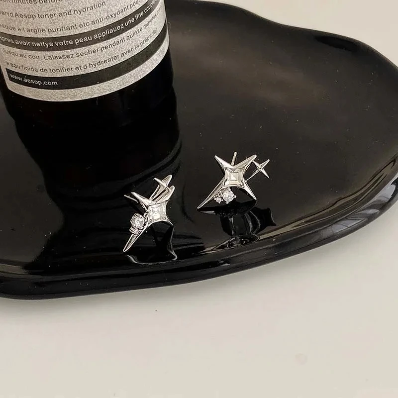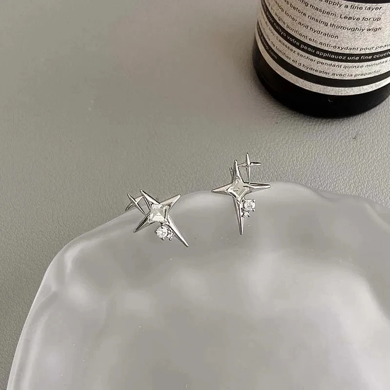 2023 Fashion Silver Color Cross Star Zircon Stud Earrings for Women Girl Korean Four-Pointed Star Personality Earrings Jewellery