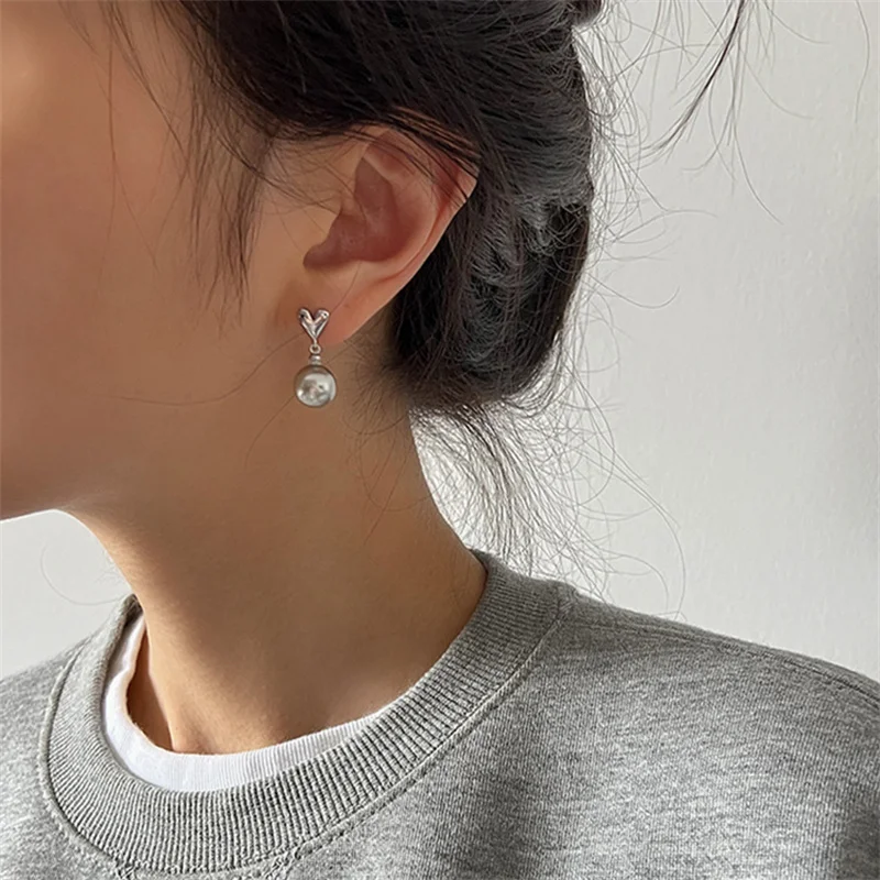 2023 New French Elegant Gray Pearl Beads Drop Earrings for Women Fashion Brand Jewelry Party Vintage Heart Accessories Gifts