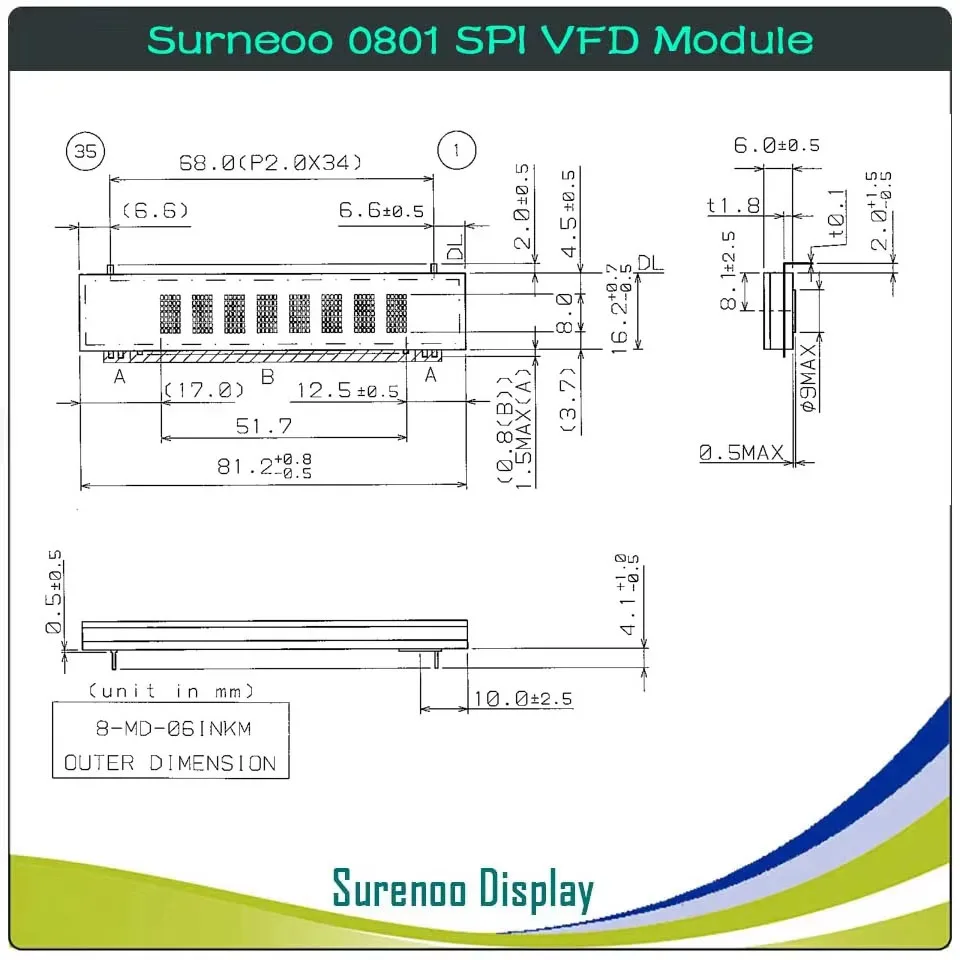 Surenoo 7P 0801 801 8X1 Serial SPI VFD LCD Module Display Screen for Arduino STM32 C51 Code