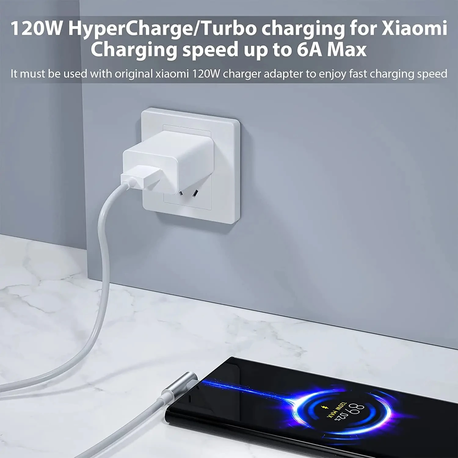 Original 120W For Xiaomi 6A USB Type C Turbo Charge Cable For Mi 14 13 12 Pro Poco F4 GT Redmi Note 13 K60 90 Degree Tipo C Cabo
